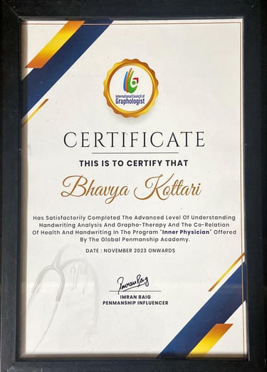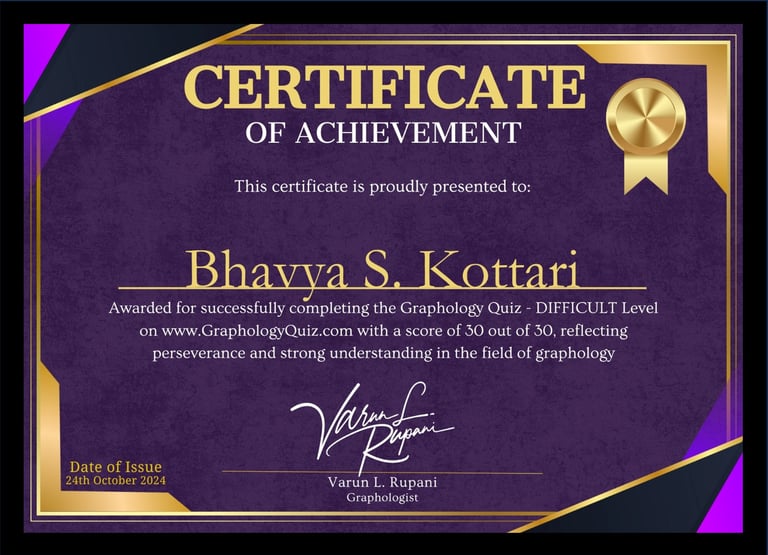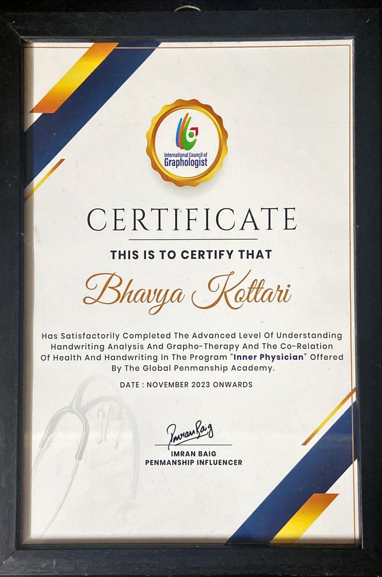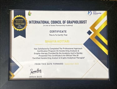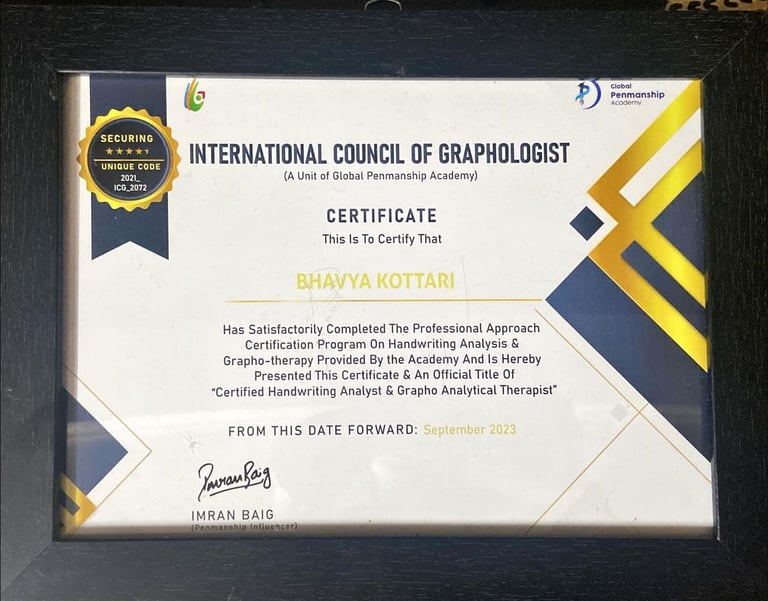 Throughout my transformative journey in Graphology, I am proud to have reached these remarkable milestones that reflect my dedication and growth in the field